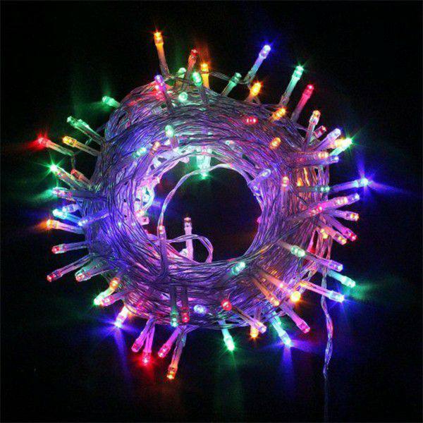 ریسه LED سوزنی مولتی کالر 10 متری از محصولات باکیفیت وارداتی در رده روشنایی و نورپردازی است که با قیمتی بسیار مناسب در فروشگاه دلوین استور برای شما عزیزان عرضه شده است. منبع تغذیه ریسه ال ای دی سوزنی برق شهری است. چراغهای 100 عددی این ریسه به کمک یک دوشاخه به پریز برق متصل شده و به کمک یک ریموت روشن و خاموش میشوند. با زدن کلید کوچکی که همراه ریسه است میتوانید نوع رقص نور را انتخاب نمائید. رقص نور های مختلف آهسته یا تند و از ترکیب رنگ های متنوع، قابل انتخاب هستند. همچنین می توانید تمام ریسه را بدون رقص نور، ثابت روشن نگه دارید. جنس ریسه از پلاستیک شفاف و مقاوم و البته انعطاف پذیر است. این نوع از ریسه سوزنی LED با رنگهای نور متنوع (چهار رنگ متفاوت) و رقص نورهای بسیار زیبا و هیجان انگیز، زیبایی بخش جشنها و میهمانیها است. مصرف برق این ریسه بسیار پایین است و در ارزیابی کلی محصولی اقتصادی محسوب میشود (به نسبت ریسههای شلنگی). توجه داشته باشید که اتصال دوشاخه و تغذیه این ریسه با برق 220 ولت شهری، این امکان را از شما سلب میکند که آن را در محیط خیلی مرطوب (آب نما یا استخر) استفاده کنید. نکته قابل توجه این است که در انتهای آن مادگی (قابلیت اتصال دو ریسه به یکدیگر) دارد و امکان افزایش ریسه وجود دارد.