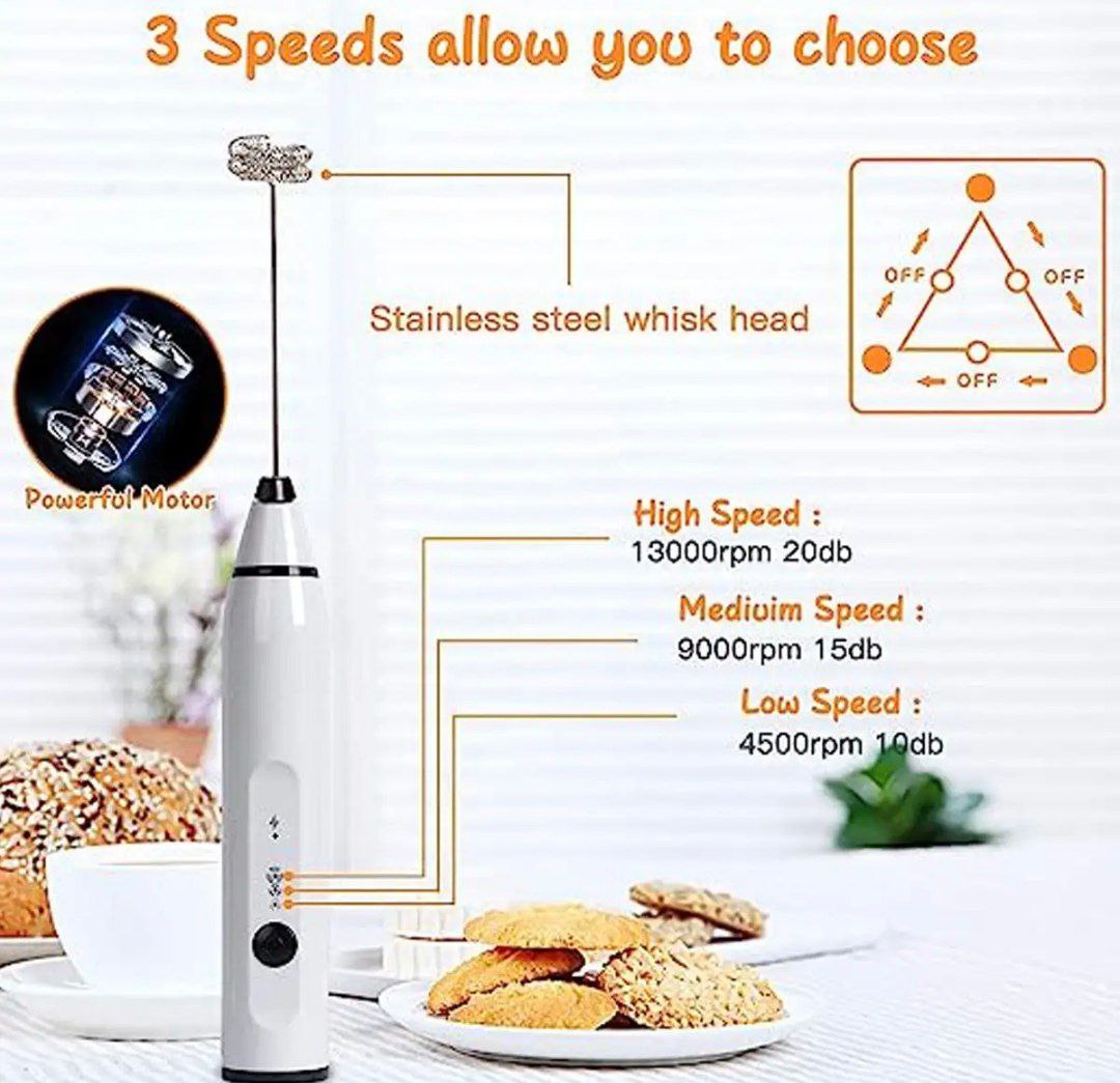 از ویژگیهای برجسته این همزن کافی میتوان به دو سر قابل تعویض آن اشاره کرد. با استفاده از سری همزن لامپی، میتوانید در کمترین زمان تخم مرغ و شیک های مختلف درست کنید. در طرف دیگر، سر فومر شیر، به شما امکان میدهد کف شیر، قهوه، کاپوچینو، لاته و سایر نوشیدنی های خوشمزه را به راحتی تهیه کنید. استفاده از همزن شارژی کف ساز شیر و قهوه سه سرعته، سبب صرفه جویی در زمان و انرژی شما میشود. وقتی شما از این دستگاه استفاده میکنید، نیازی به هم زدن دستی ندارید و میتوانید به راحتی و با تنها چند کلیک، شیر و قهوه را هم میزنید.
