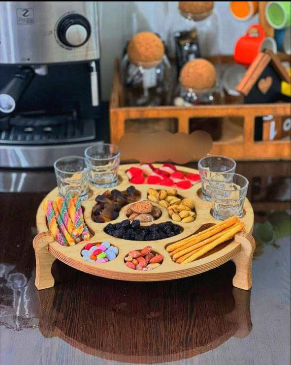 اردوخوری چوبی_ مزهخوری 4 شات پایهدار گرد