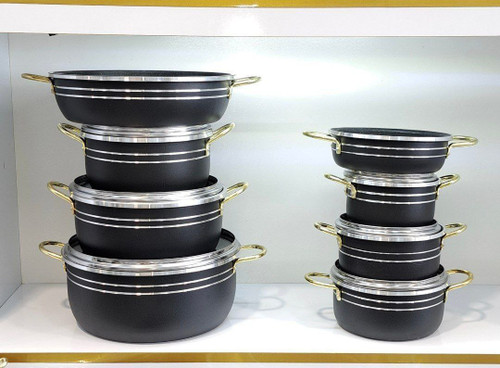 ناموجود🔱سرویس 14 پارچه طرح چدن زنبوری دسته طلایی (گلدن استار)