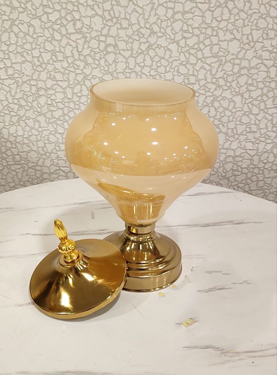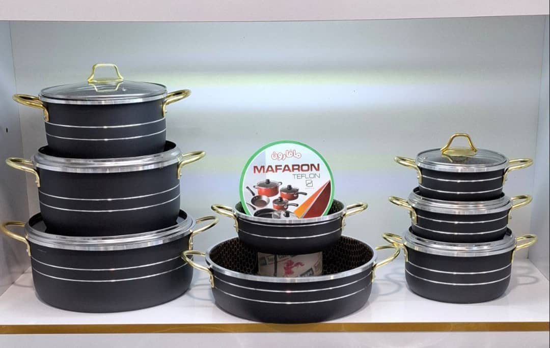 ناموجود🔱سرویس 14 پارچه طرح چدن زنبوری دسته طلایی (گلدن استار)
