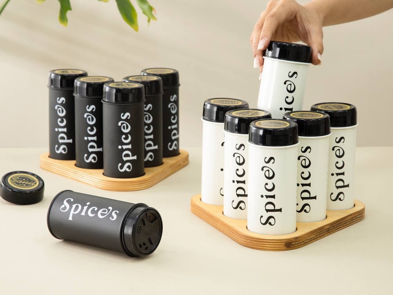 ناموجودجا ادویه 6 عددی فلزی مشکی و سفید استنددار مثلثی
